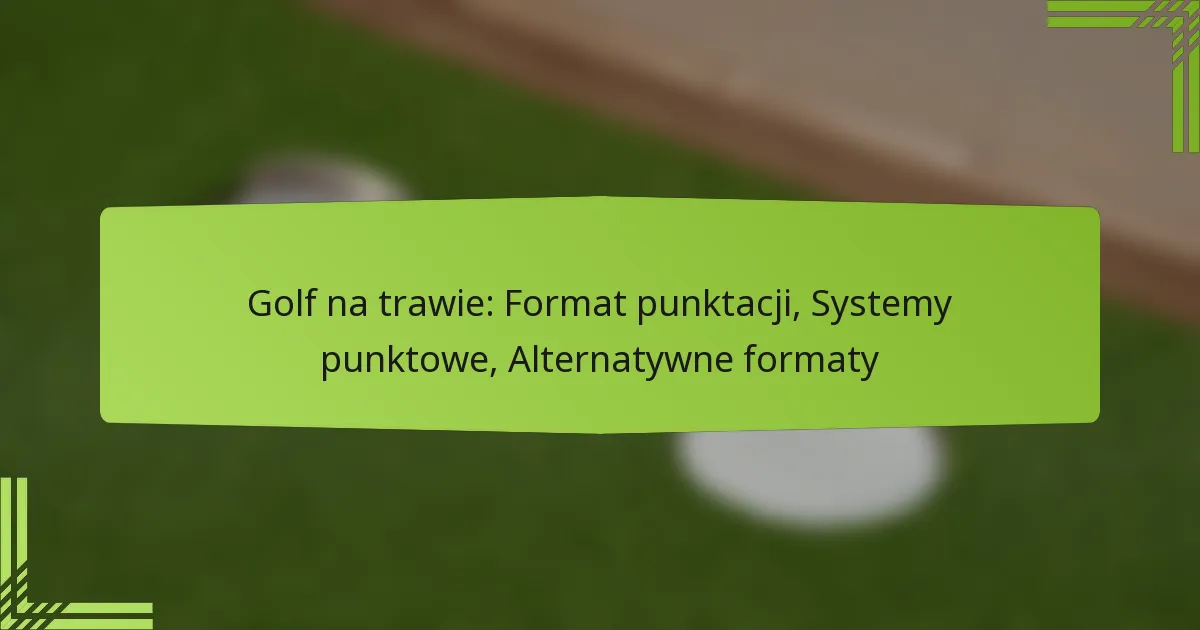 Główne formaty punktacji w golfie na trawie to gra na uderzenia, gra meczowa oraz system Stableford. Każdy format ma swoje zasady i metody punktacji, dostosowane do różnych stylów gry i poziomów rywalizacji.
